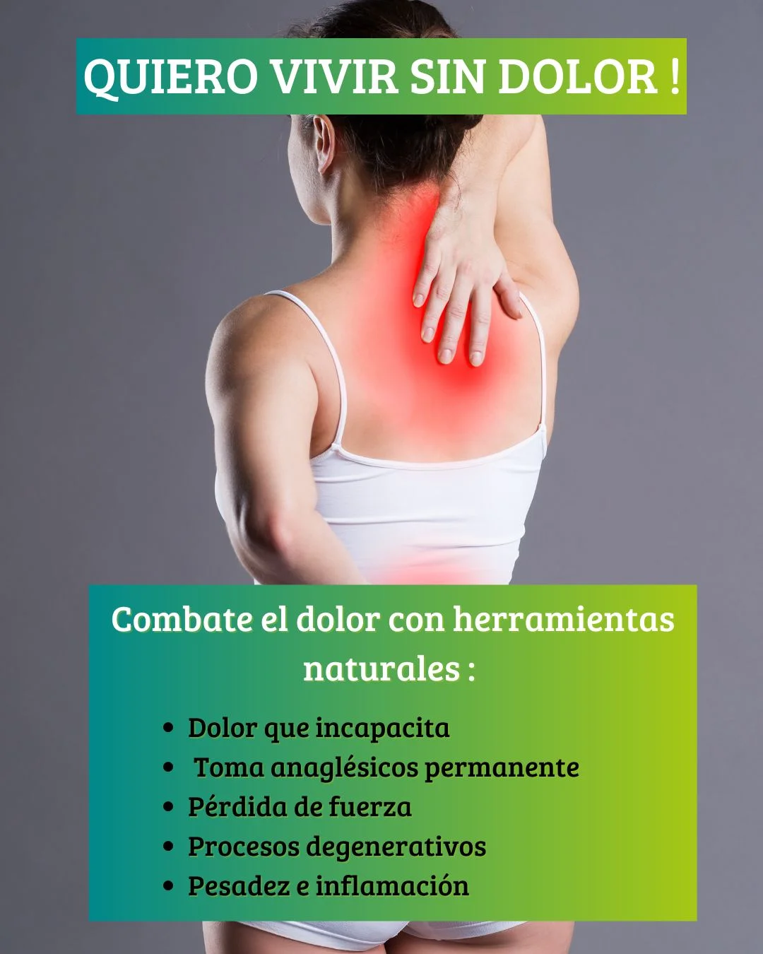 En mi consulta manejo medicamentos naturales basados en fitoterapia y homeopatía enfocados en regular  trastornos inflamatorios y de pérdida acelerada de líquido sinovial,  lo que contribuye a la generación de espasmos musculares y dificultades con el tránsito circulatorio y linfáticos generadores de inflamación, pesadez y dolor muscular y articular